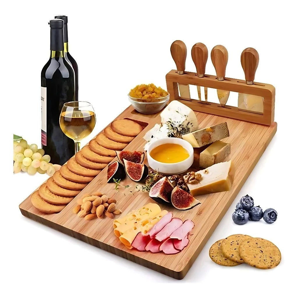 Tábua de Frios Gourmet Premium em Bambu com Utensílios Inox